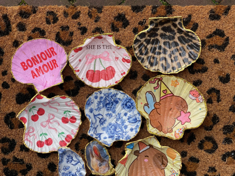 Schelpen set makenJe krijgt een grote jacobsschelp en een kleinere schelp, die jij zelf mag beplakken en beschilderen met hele lieve servetten. Wij hebben wel meer dan 150 verschillende servetten, waaruit jullie kunnen kiezen