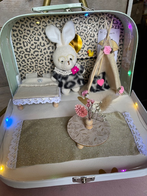 Koffertje met knuffeltje en verlichtingDit is denk ik de meest leuke workshop die ik geef op kinderfeestjes.